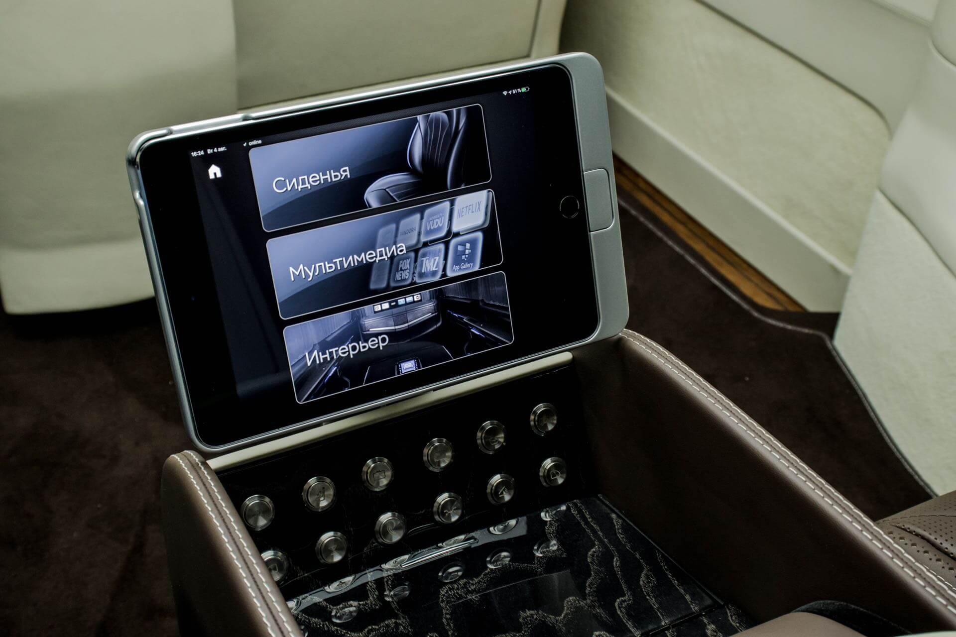 - Возможность управления функциями автомобиля с помощью планшета (iPad)