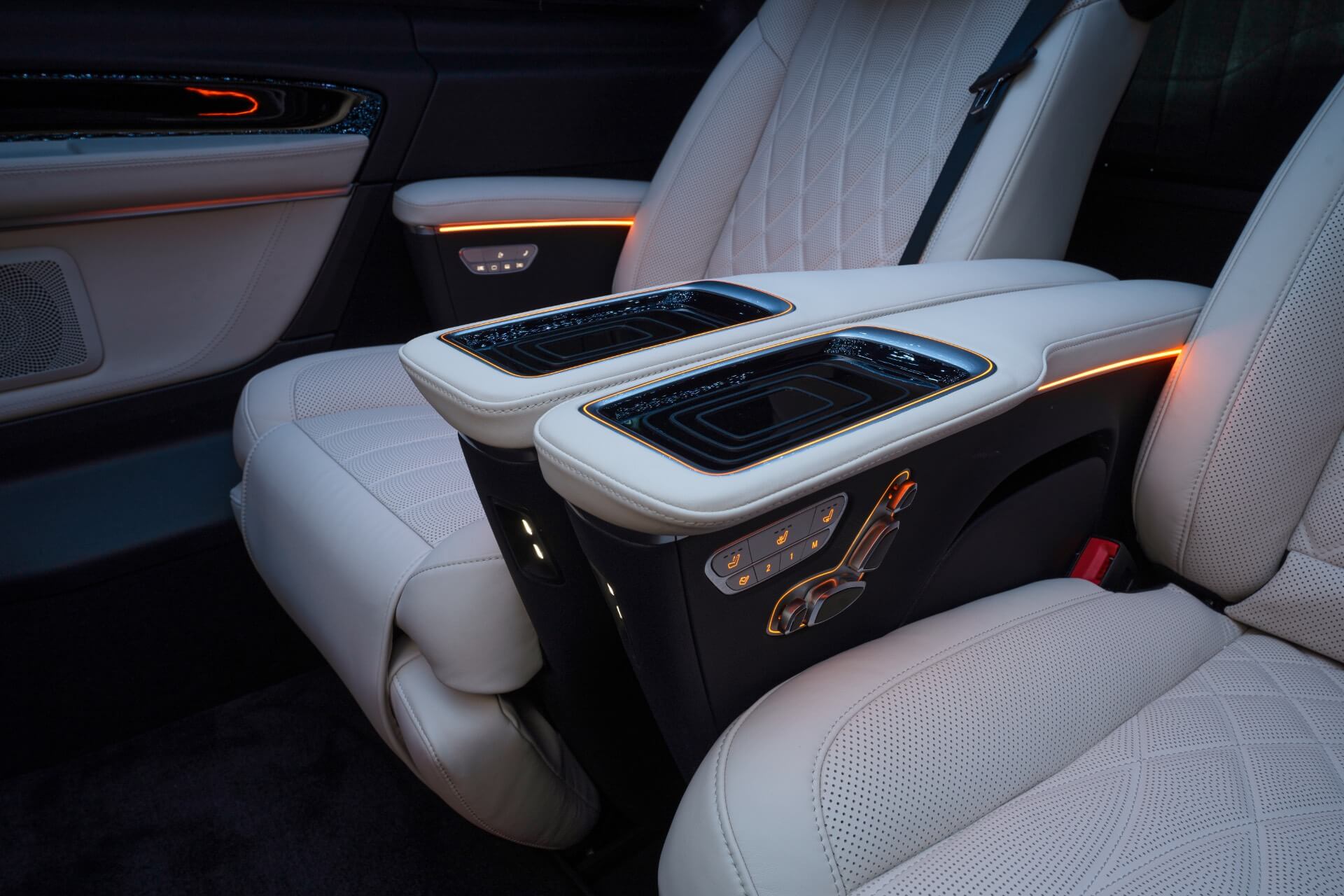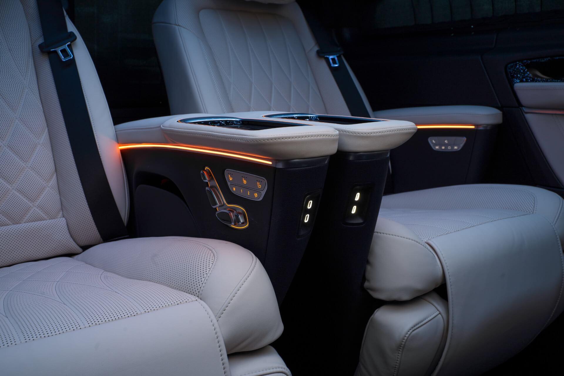 - Встроенные в подлокотники беспроводные зарядки